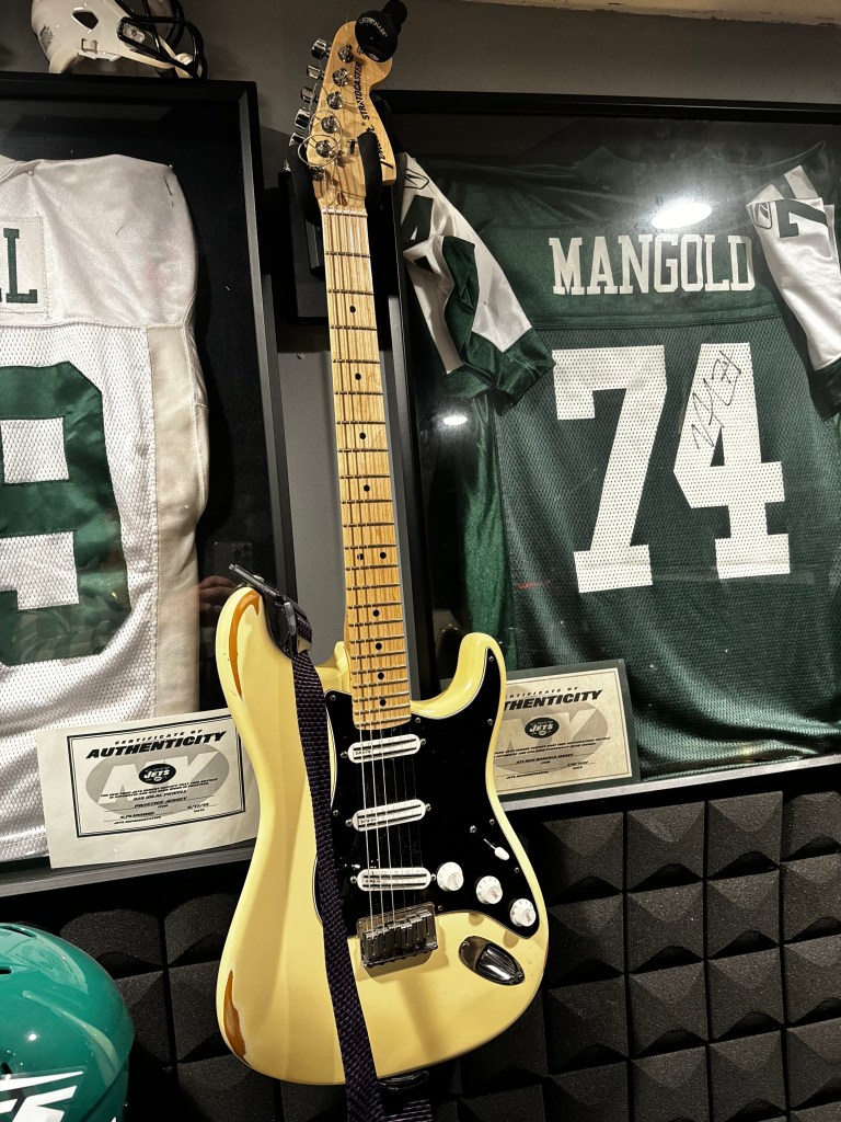 Anyway, after looking for one for years I finally found a Billy Corgan signature strat online, when it got home and opened it, I noticed it was tuned down, and I just started playing most of this song out of nowhere. I figured that’s where the guitar wanted to live so it’s down there in drop C. Thanks to my pal Chris Magno for the killer guitar solo.
