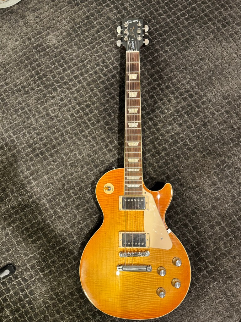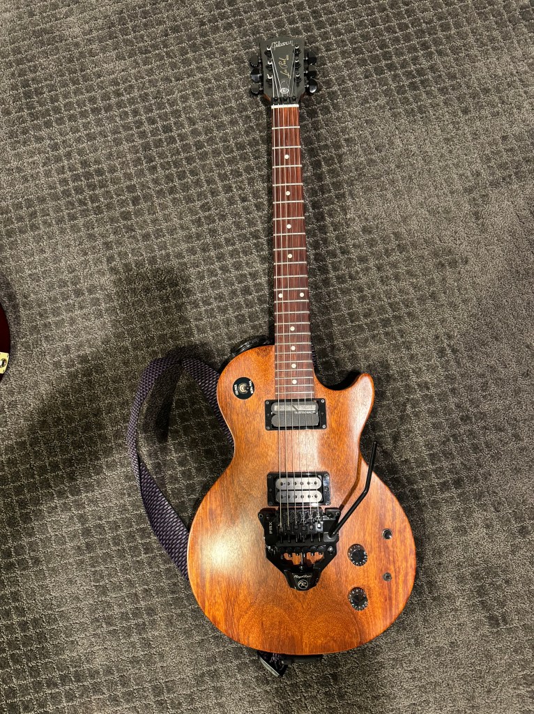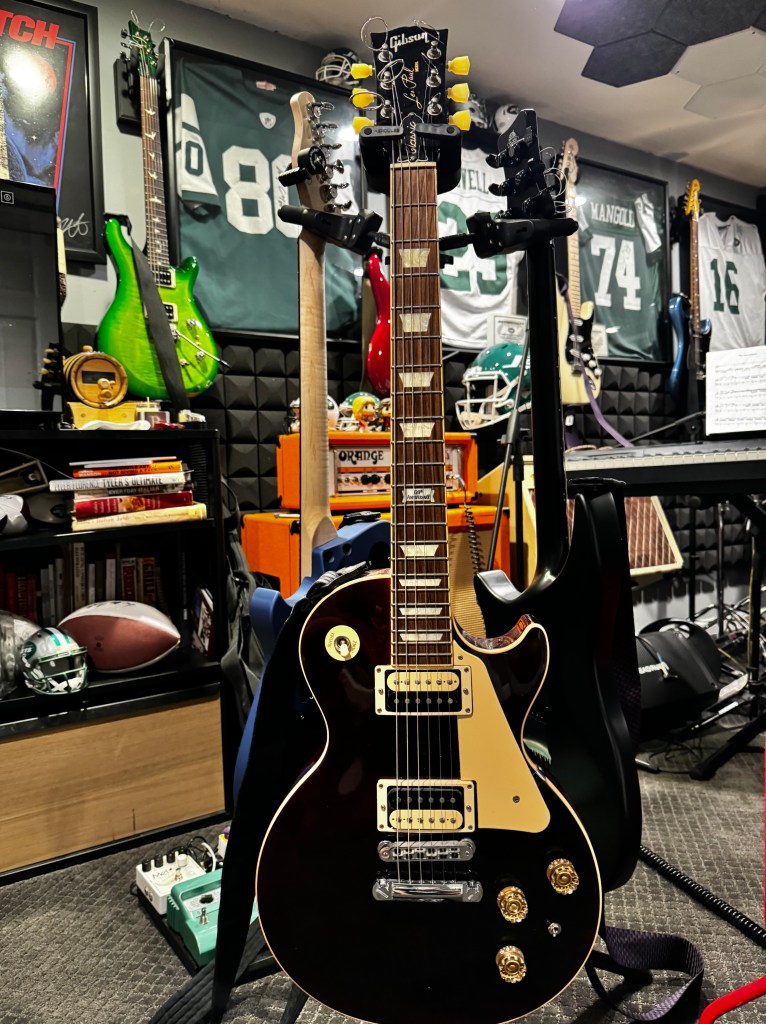 One day I was in guitar center and I sat down at one of the drum kits and started playing what later became the intro to this song. I thought it was kind of cool and recorded it at home and almost immediately came up with the ambient intro part with the organ and guitars. There it sat for a month or so, just an intro until one day I was messing around on a bass (also in guitar center) and came up with the verse of the song. Again I went home and it all came together quickly. For the choruses, I wanted an old school 80’s group of people shouting so there’s like 18 of me in there. One Saturday, I asked my wife if she would go downstairs and yell “days, weeks, months. etc” She was a bit confused bet relented and if you listen you’ll here Lisa in there as well. Gibson Les Paul Standard (Drop D)